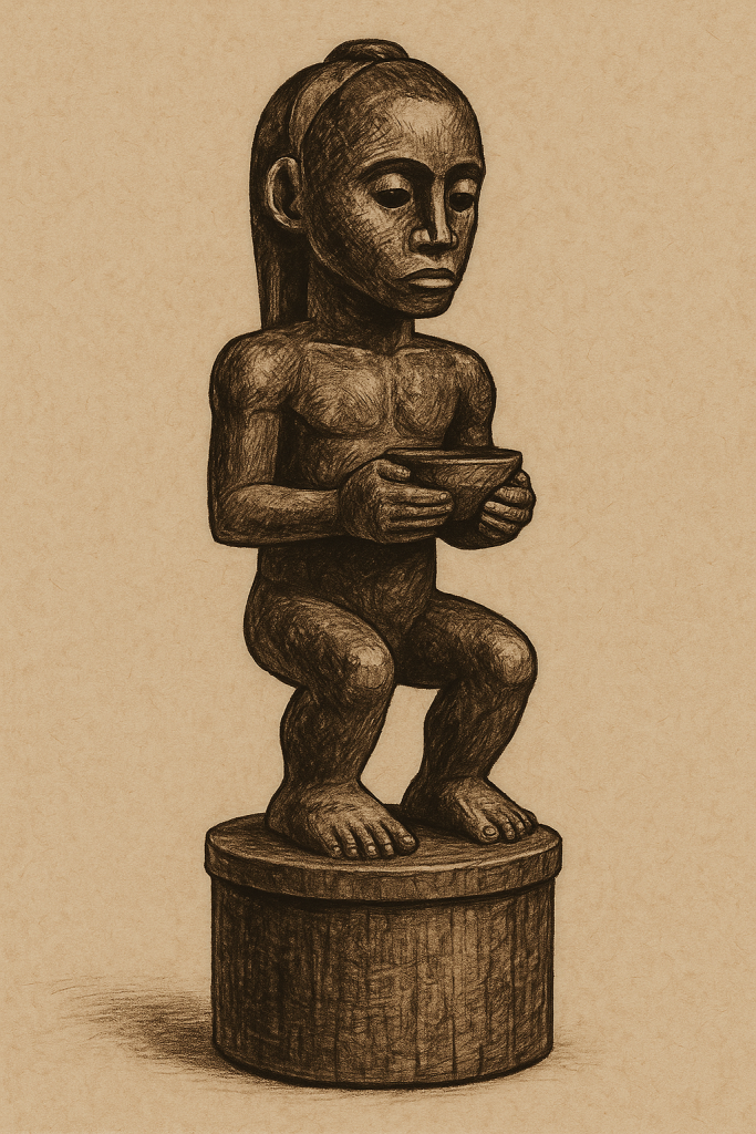 Rapportée d’Afrique par mes grands-parents, elle a fini par être vendue aux enchères, bien avant que je n’aie entendu parler de restitution d’œuvres sacrées. À l’époque, cela ne m’avait pas choquée ; j’avais seulement regretté de ne plus la voir. Ce n’est qu’en écrivant La restitution que j’ai compris tout ce que cet objet représentait.